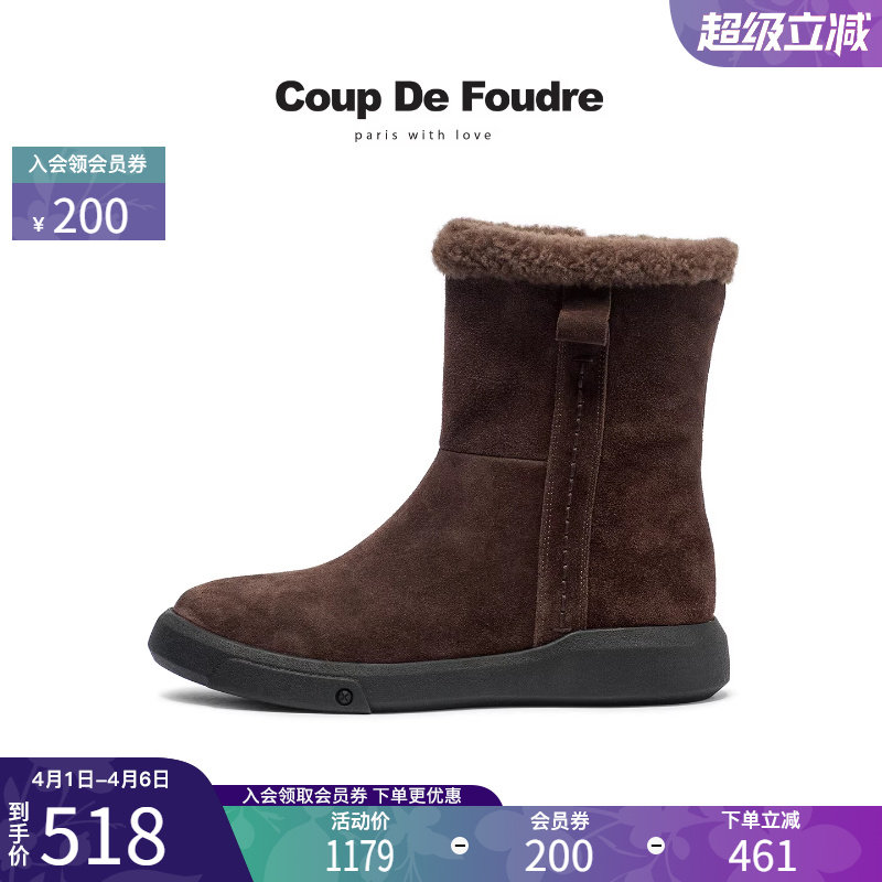 CDF女鞋2025秋冬新款时尚百搭雪地靴圆头纯色低跟厚绒休闲女靴潮