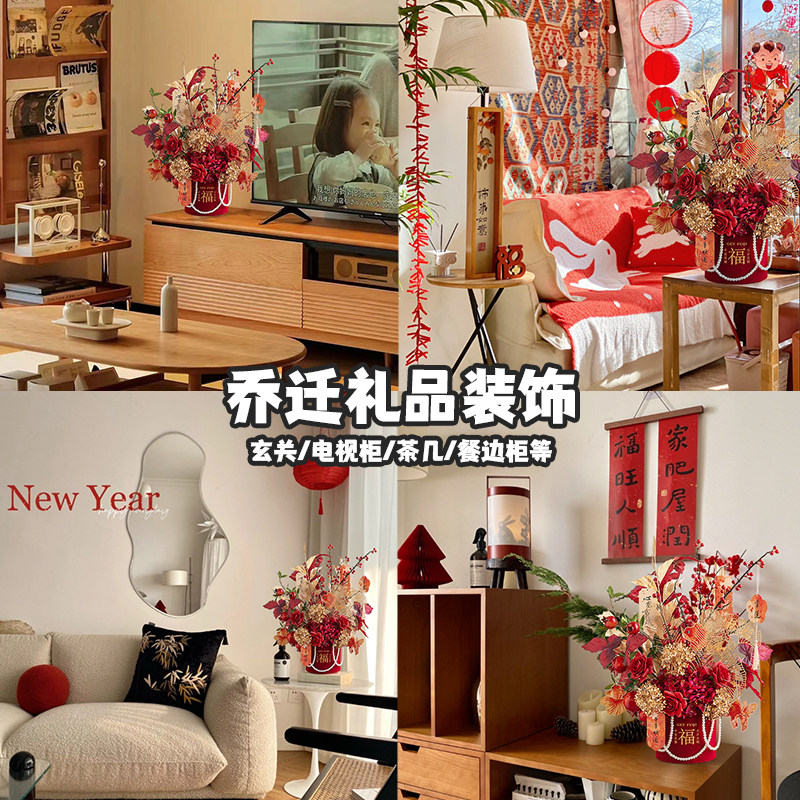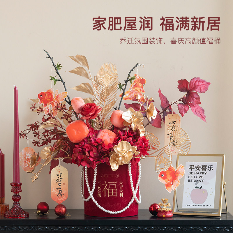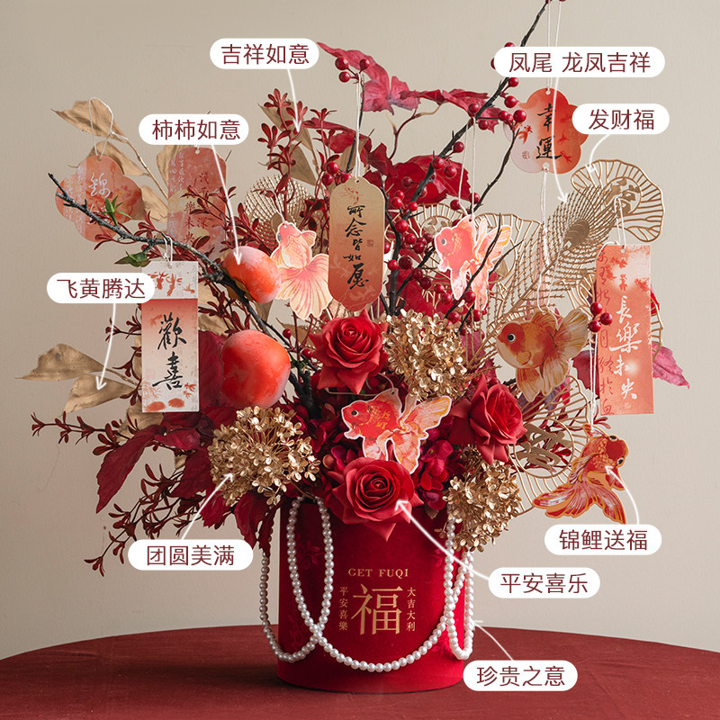红色抱抱福桶摆件装饰品氛围布置乔迁新居礼物高级感结婚花束花艺