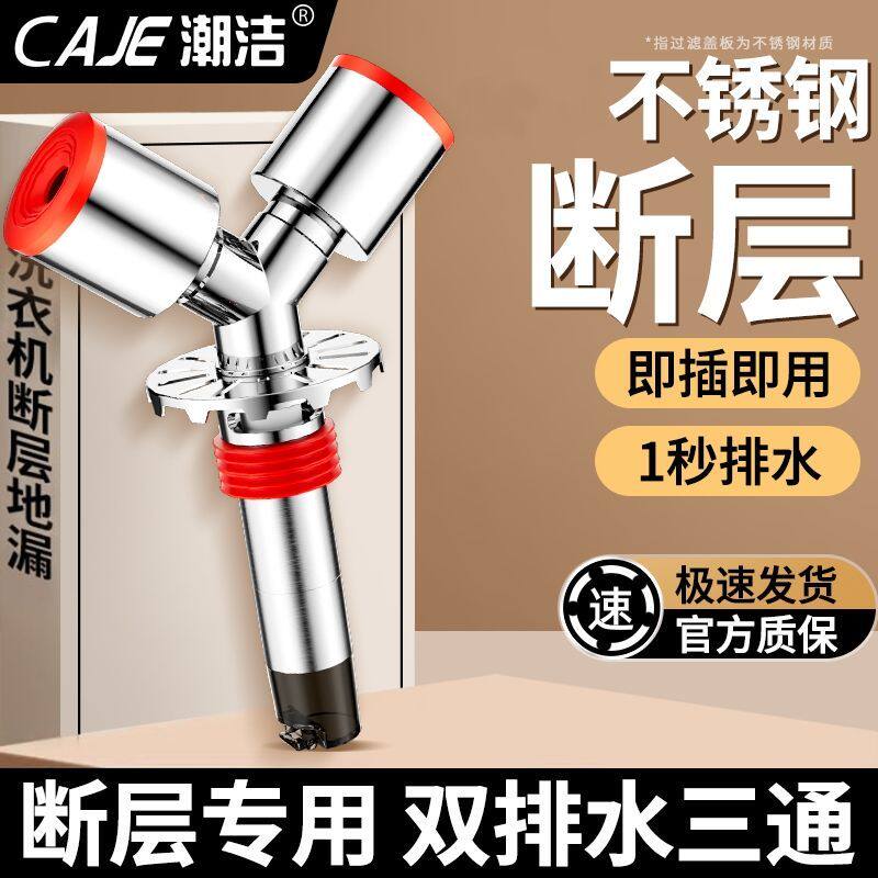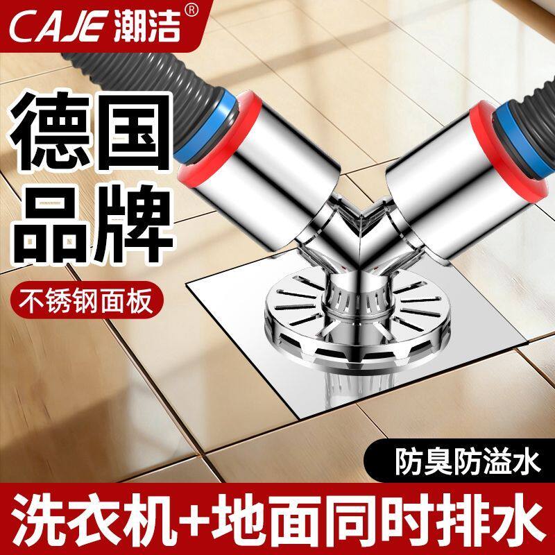 潮洁洗衣机下水管三通延长管加长排水管二合一防臭防溢水地漏接头