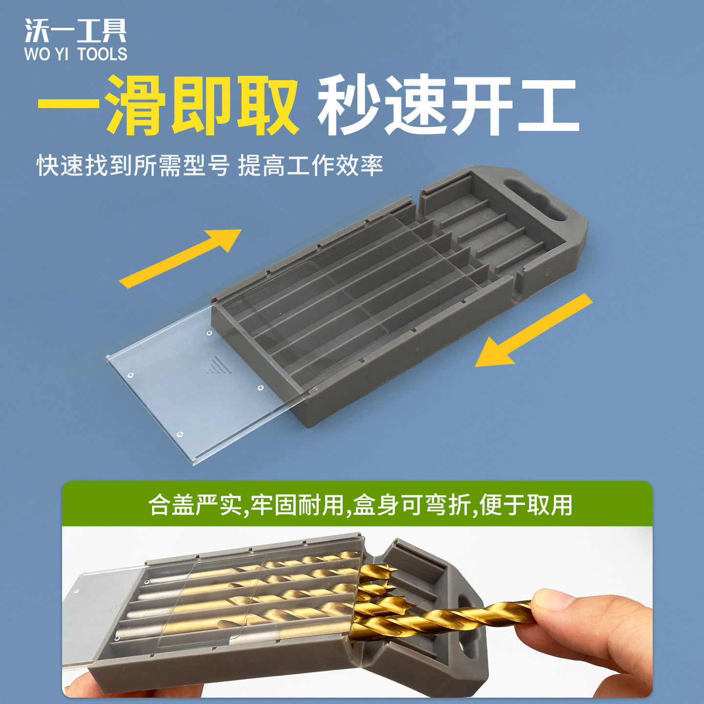 沃一钻头收纳盒麻花钻丝锥批头五金工具加厚透明塑料盒整理储存用