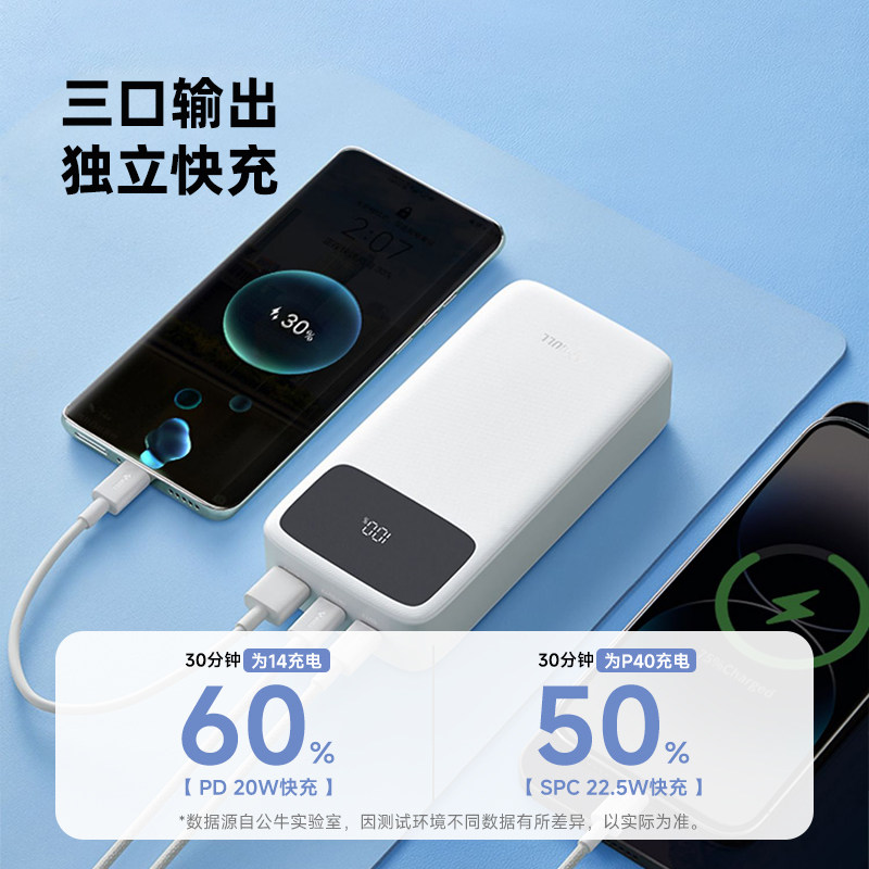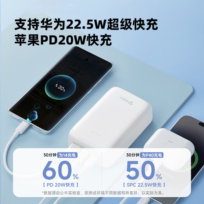 【充电宝3C认证可上飞机】公牛2025新款充电宝20000毫安适用苹果小米超薄大容量快充移动电源正品官方旗舰店