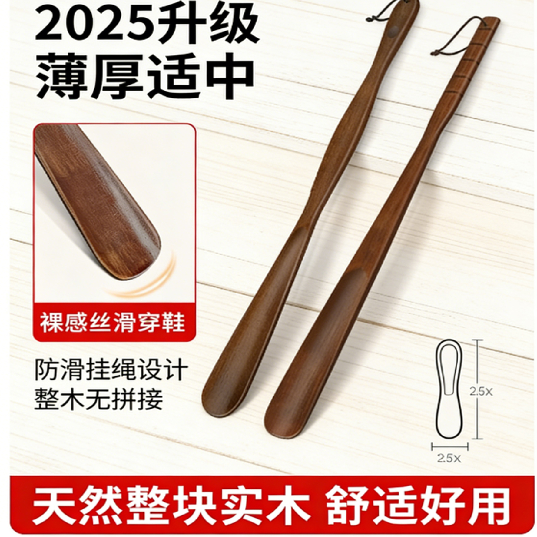 长柄实木鞋拔子家用不弯腰提鞋器孕妇老人穿鞋神器加长鞋扒鞋溜