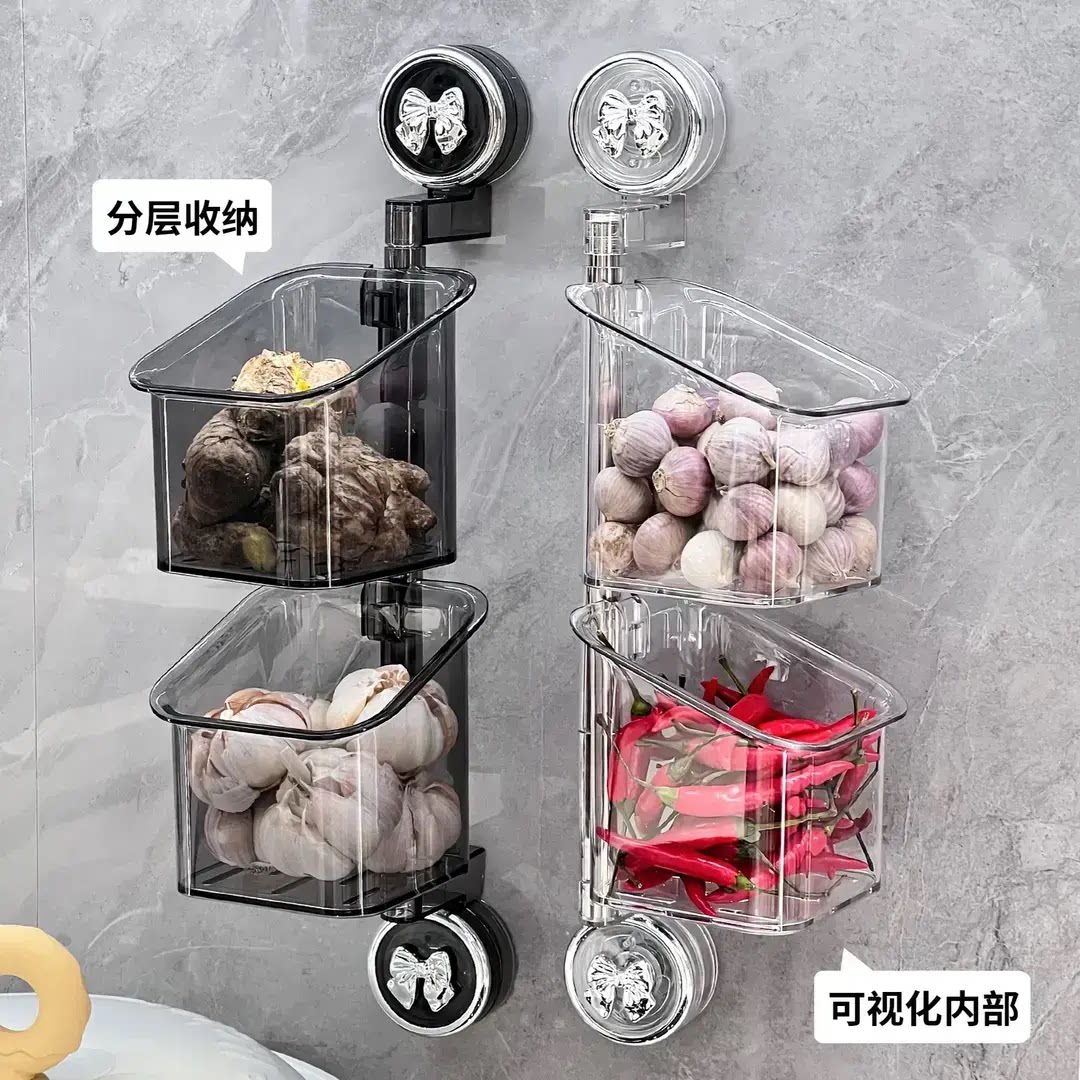 抢!【工厂价】双吸盘旋转葱姜蒜收纳盒壁挂式农用物资肥料单质