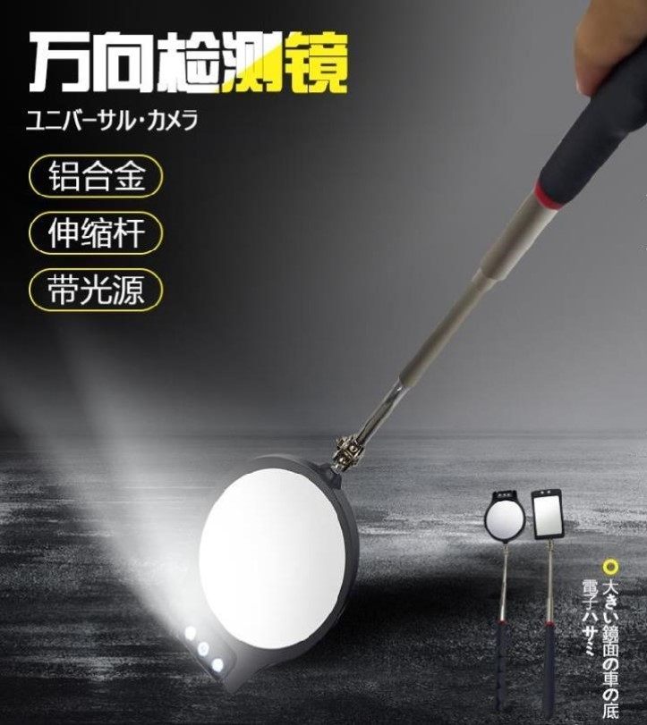车底反视镜五金工具转向多功能圆形镜探测镜带灯缩短折叠检查车用