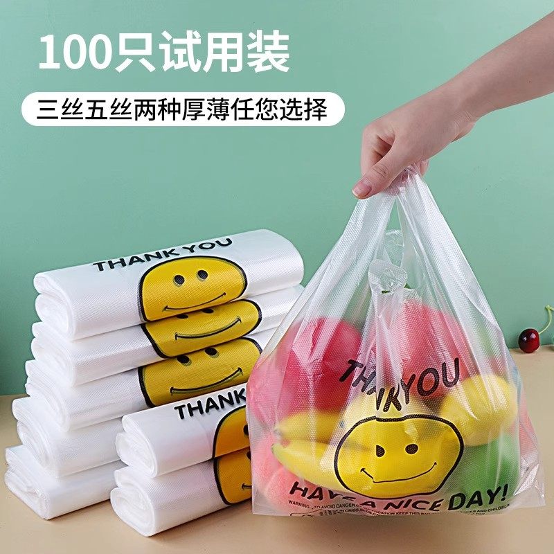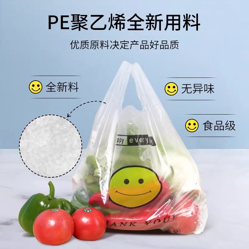 透明笑脸塑料袋食品袋购物袋外卖打包袋手提方便袋马甲背心水果袋