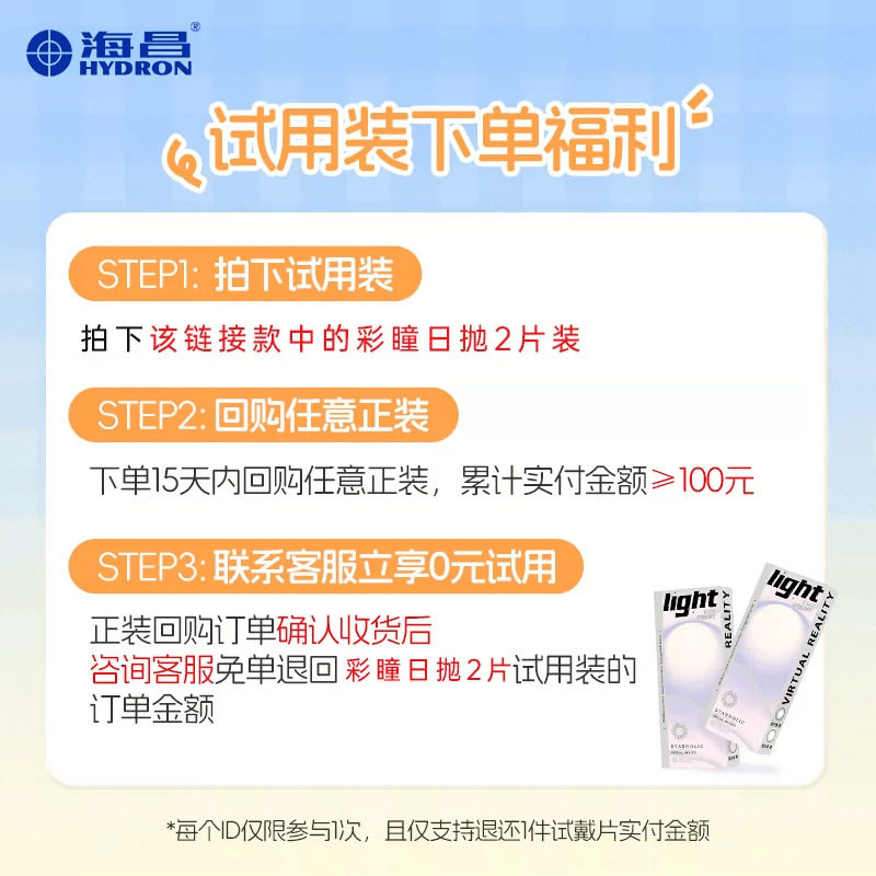 【天猫U先】海昌星眸追光美瞳日抛女彩色隐形近视眼镜2片试用正品