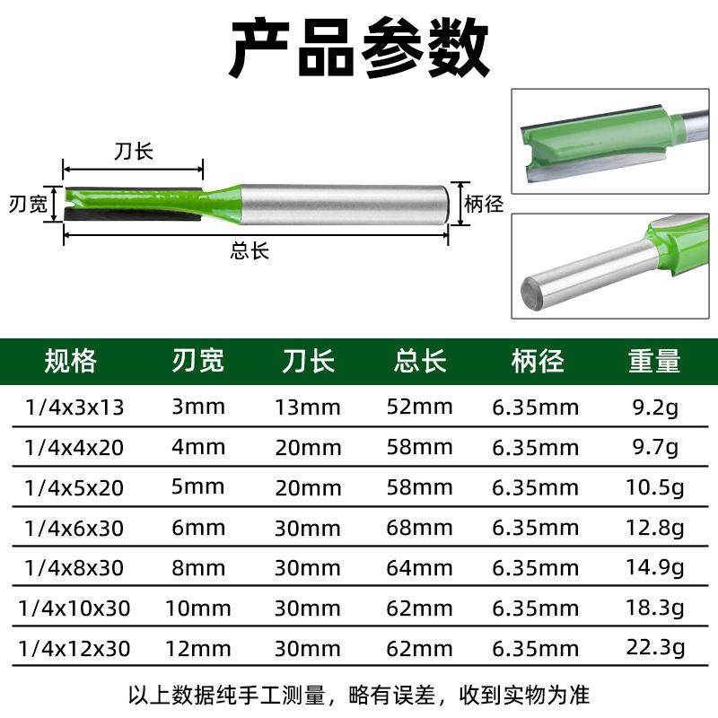 绿色双刃直刀木工刀具铣刀修边机刀头雕刻工具开槽修边刀电木铣刀