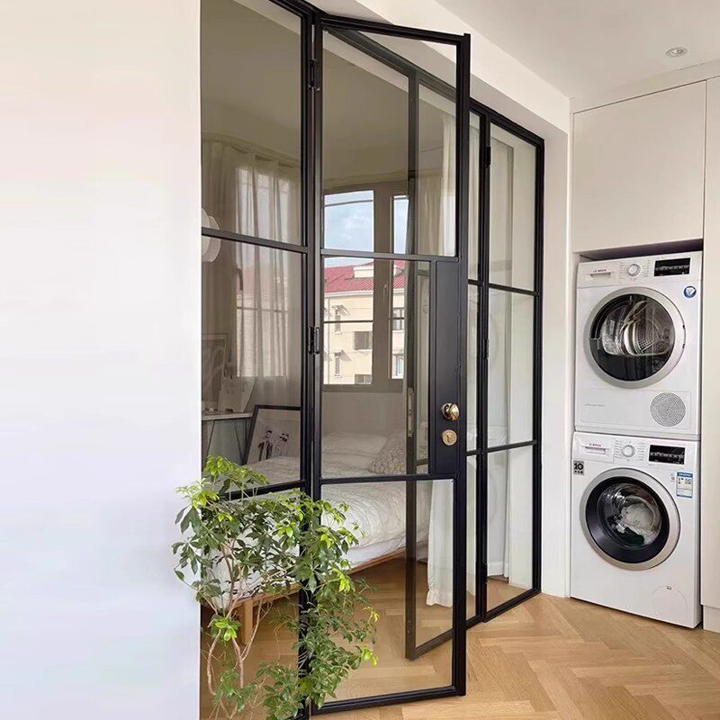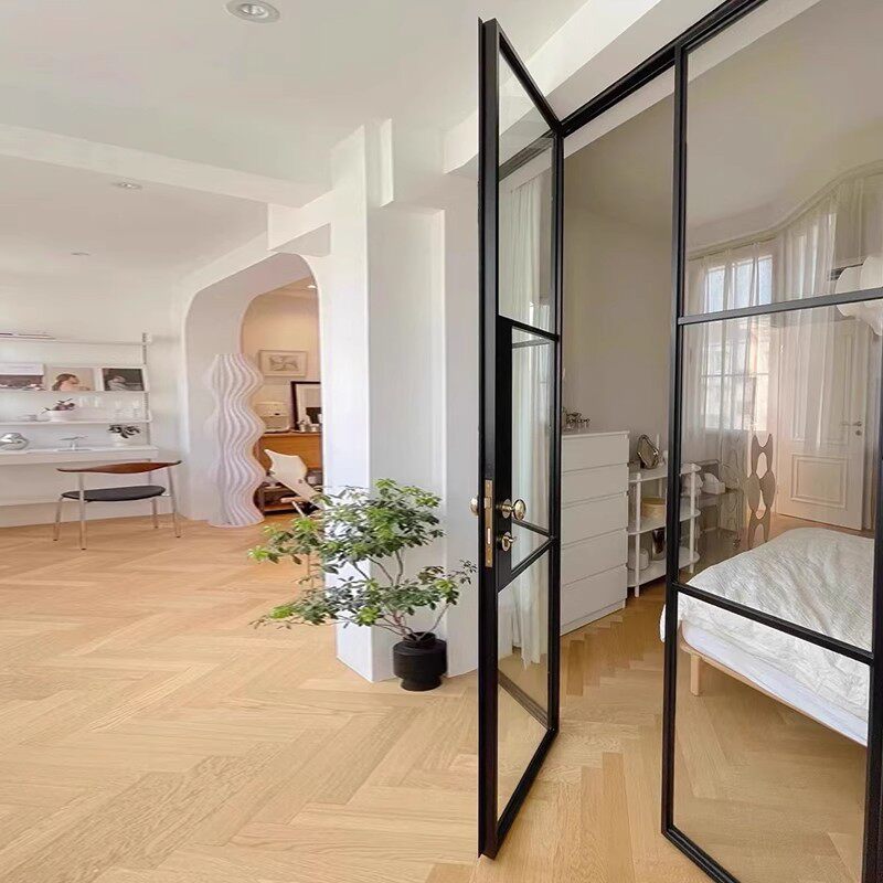 高端定制阳台复古长虹玻璃隔断门厨房书房铝合金钢老钢窗对开门