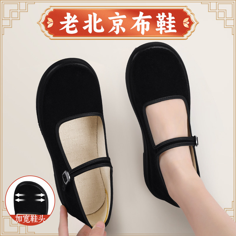 老北京布鞋女2026新款正品透气单鞋软底懒人不闷脚黑色妈妈工作鞋