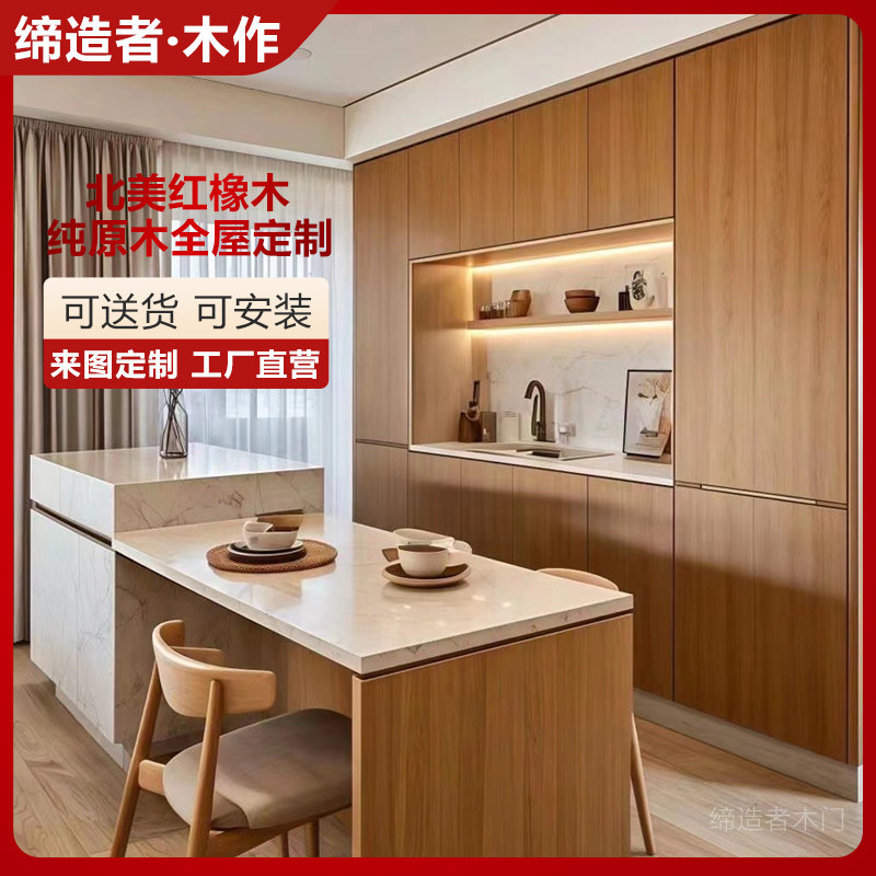 北美红橡木纯原木室内门 全实木门卧室门木门 全屋定制衣柜护墙板