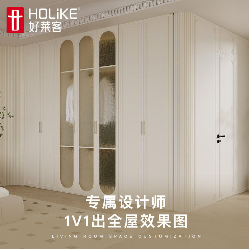 好莱客轻法式复古风走入式衣柜定制 转角衣帽间卧室柜子全屋电商