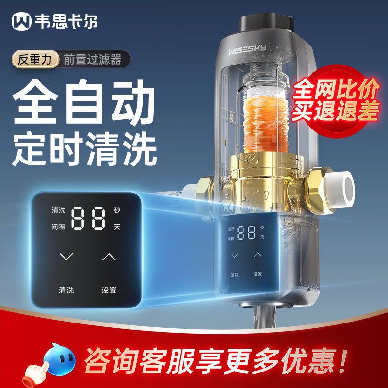 韦思卡尔全自动前置过滤器家用全铜反冲洗全屋净水器反重力80TPro