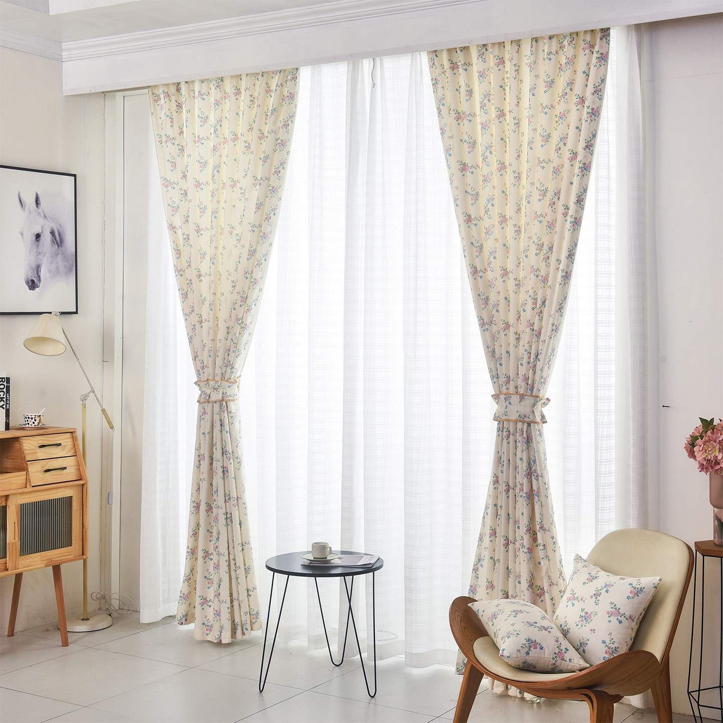 田园风窗卧室客厅书房阳台通用遮光窗帘轻奢定制窗帘窗纱成品垂感