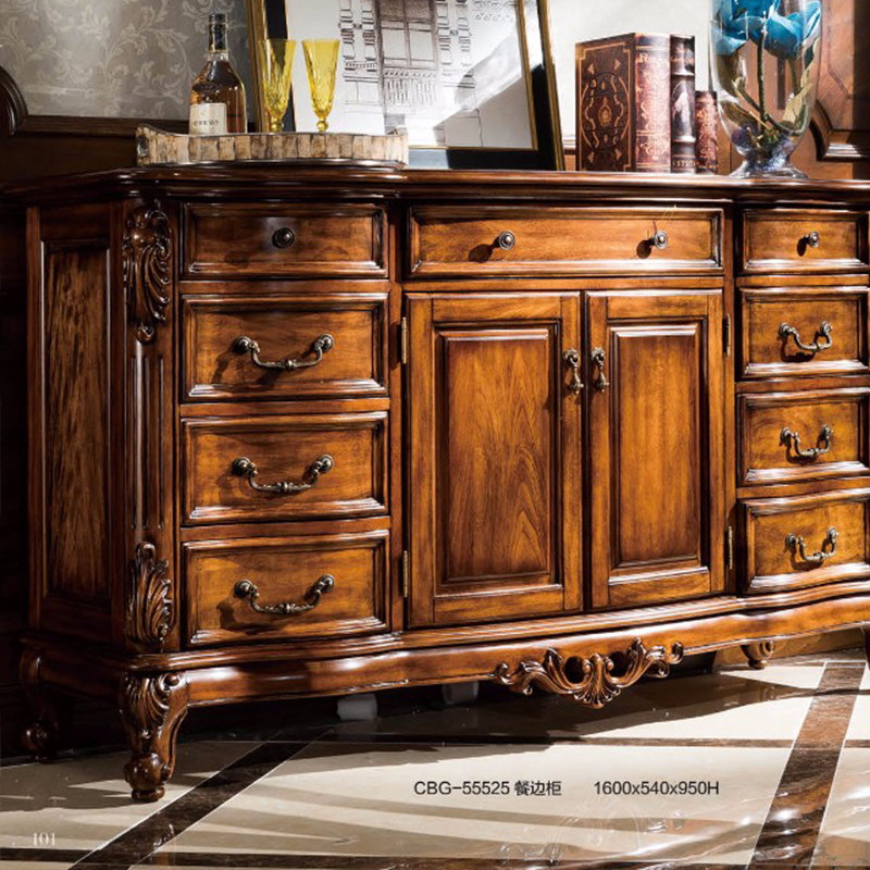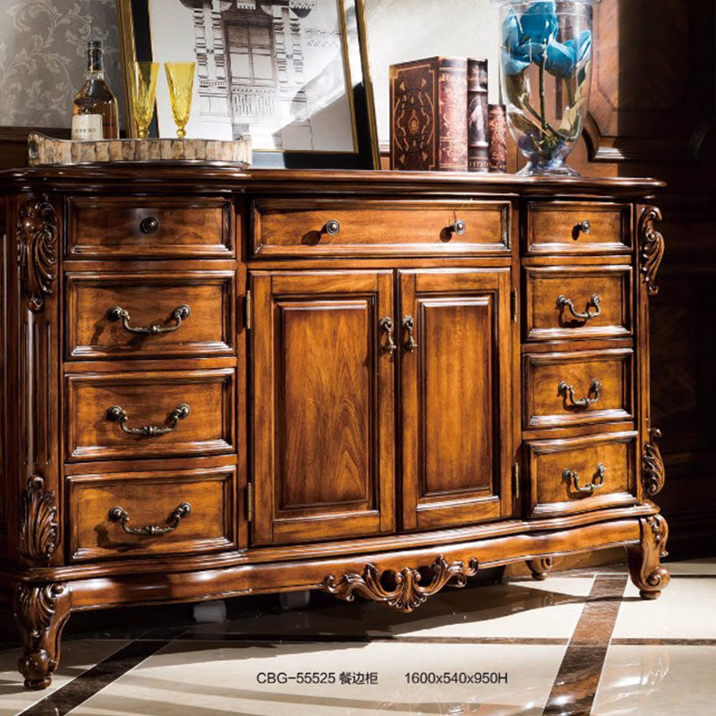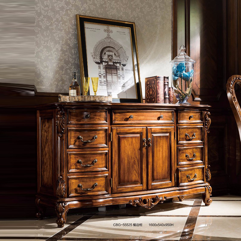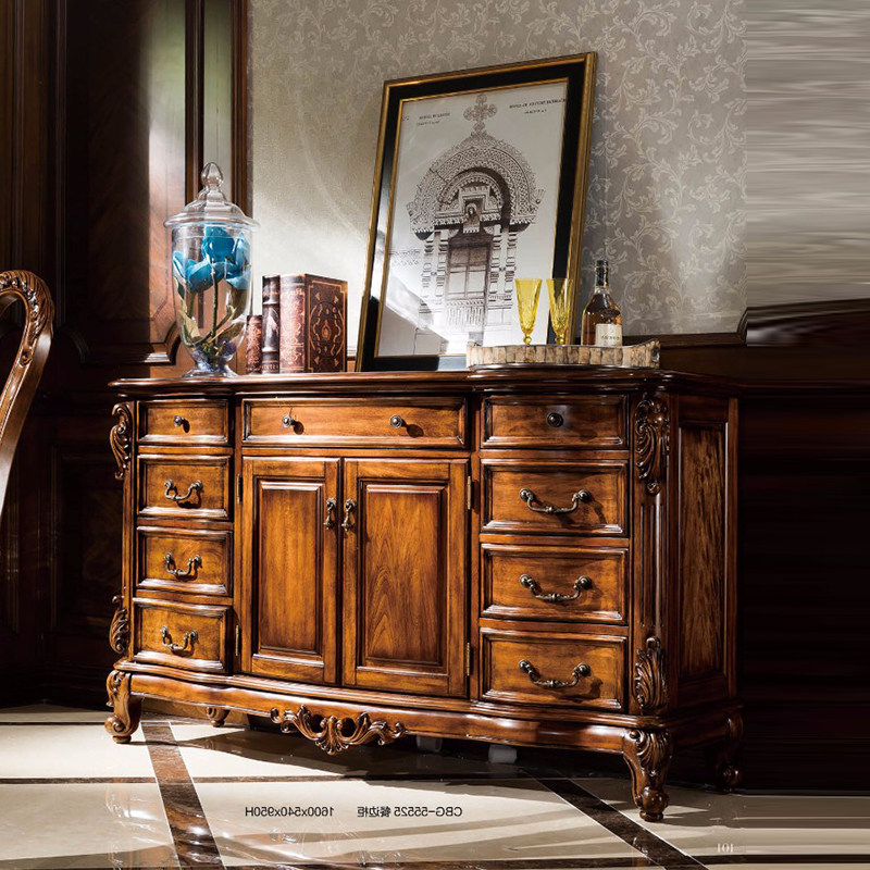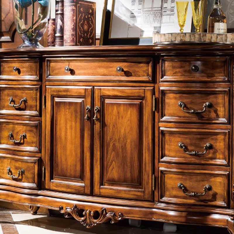 美式复古餐边柜家用餐厅走廊柜子欧式雕花做旧整装碗碟柜茶水柜