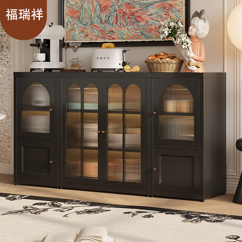 2025新款中古风铁艺餐边柜客厅收纳储物柜茶水吧台柜置物柜小橱柜