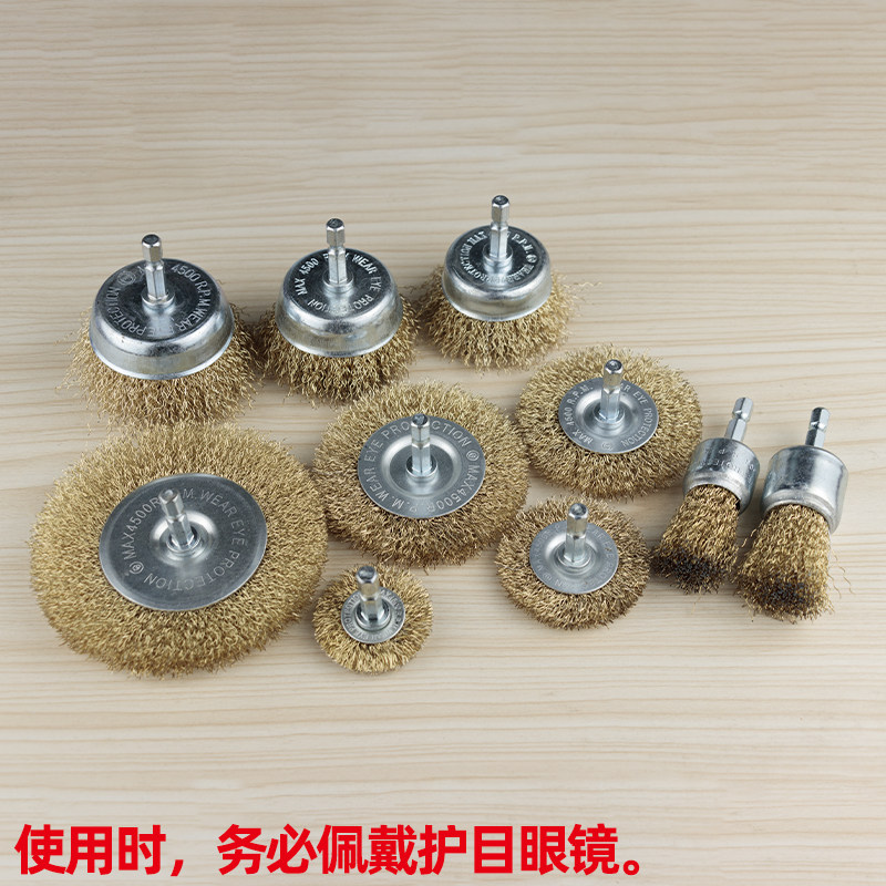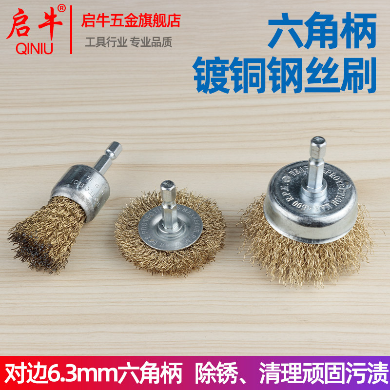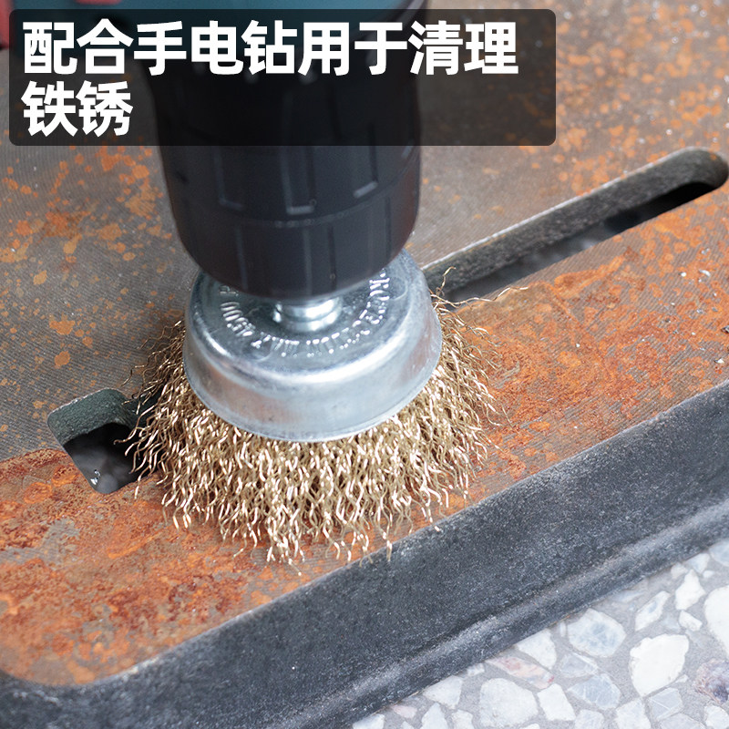 电钻镀铜钢丝刷六角柄电动清洁刷碗型电磨头木工打磨除锈抛光工具