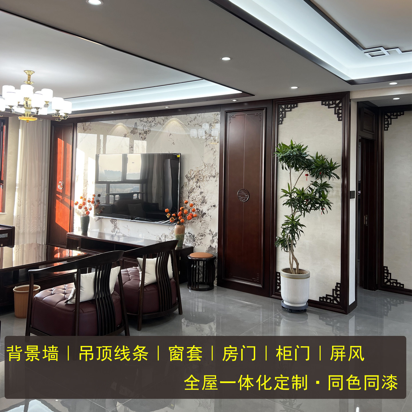新中式实木烤漆电视背景墙客厅集成护墙板中式全屋定制装饰墙板