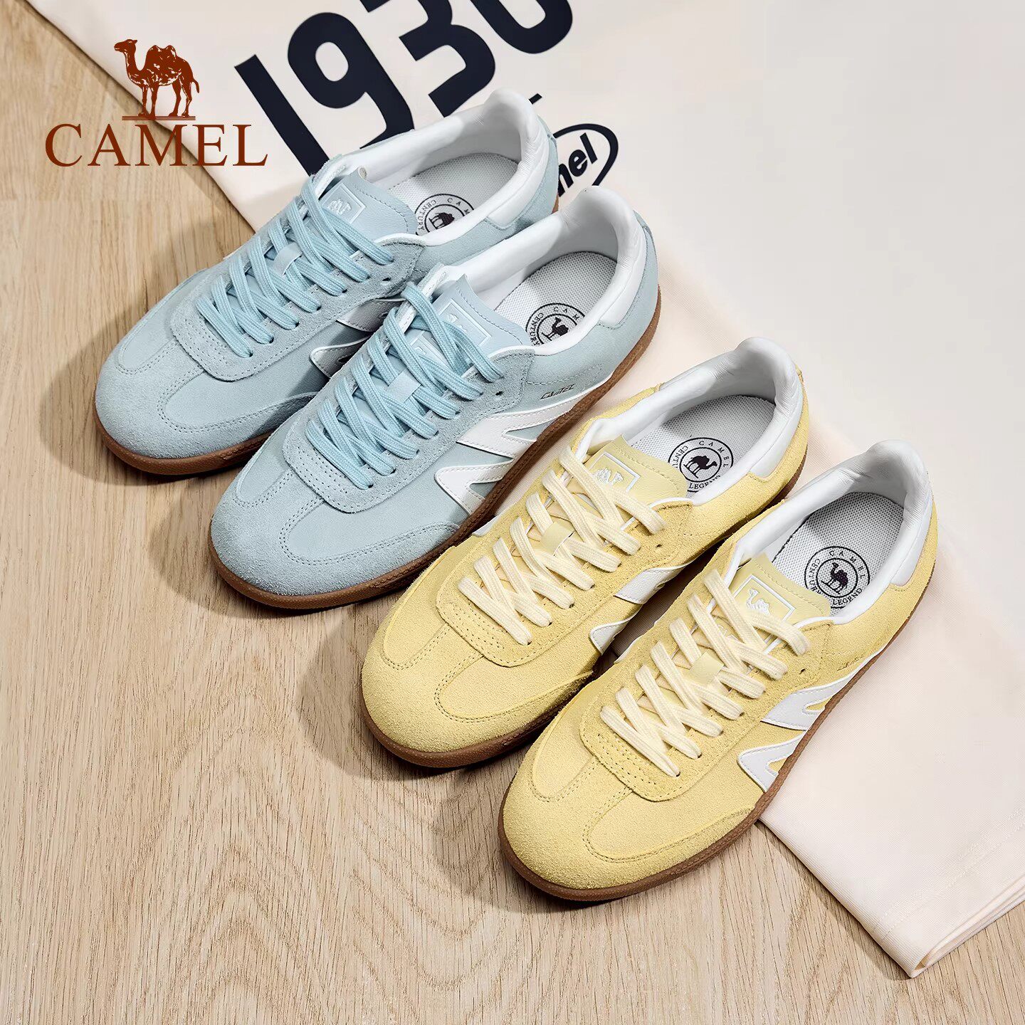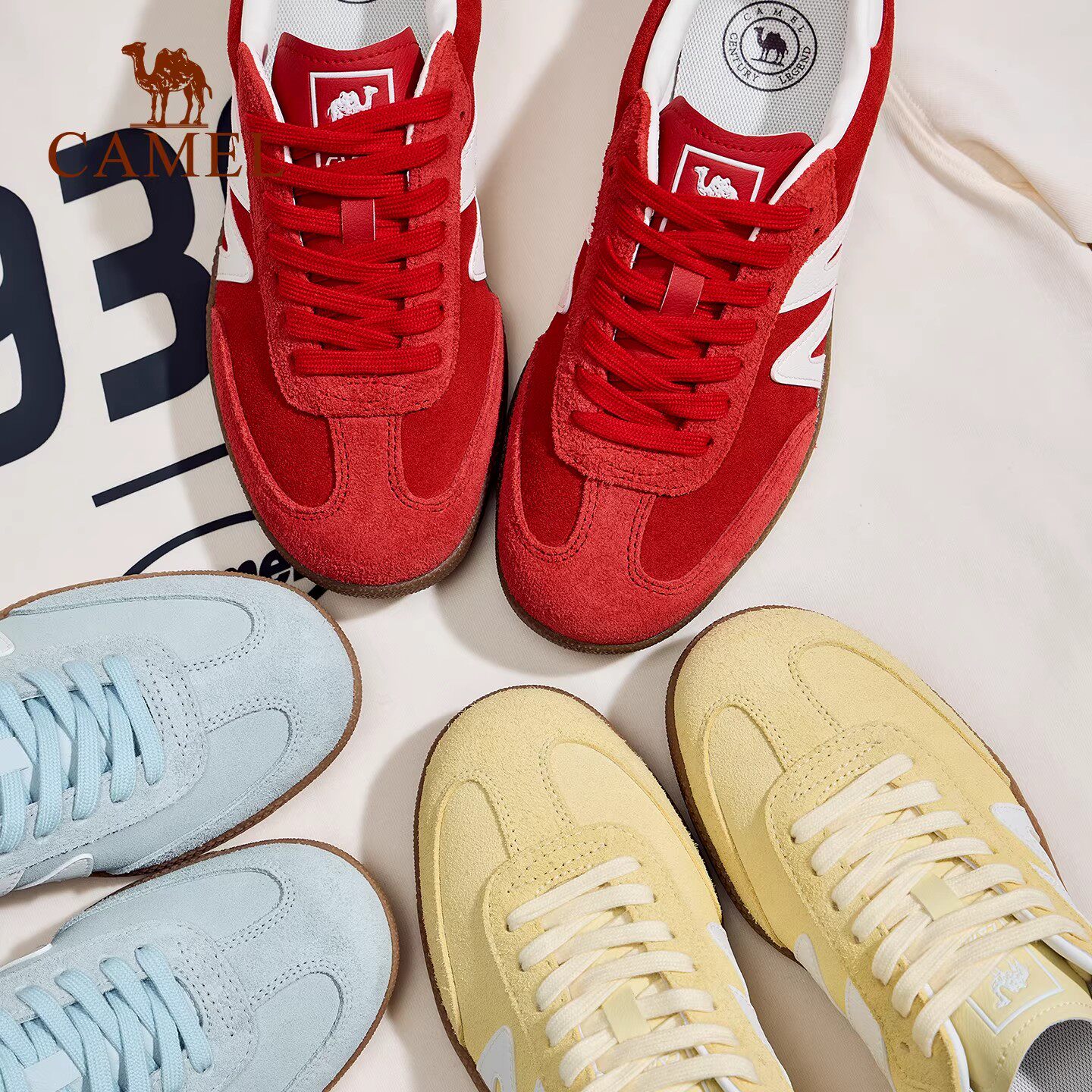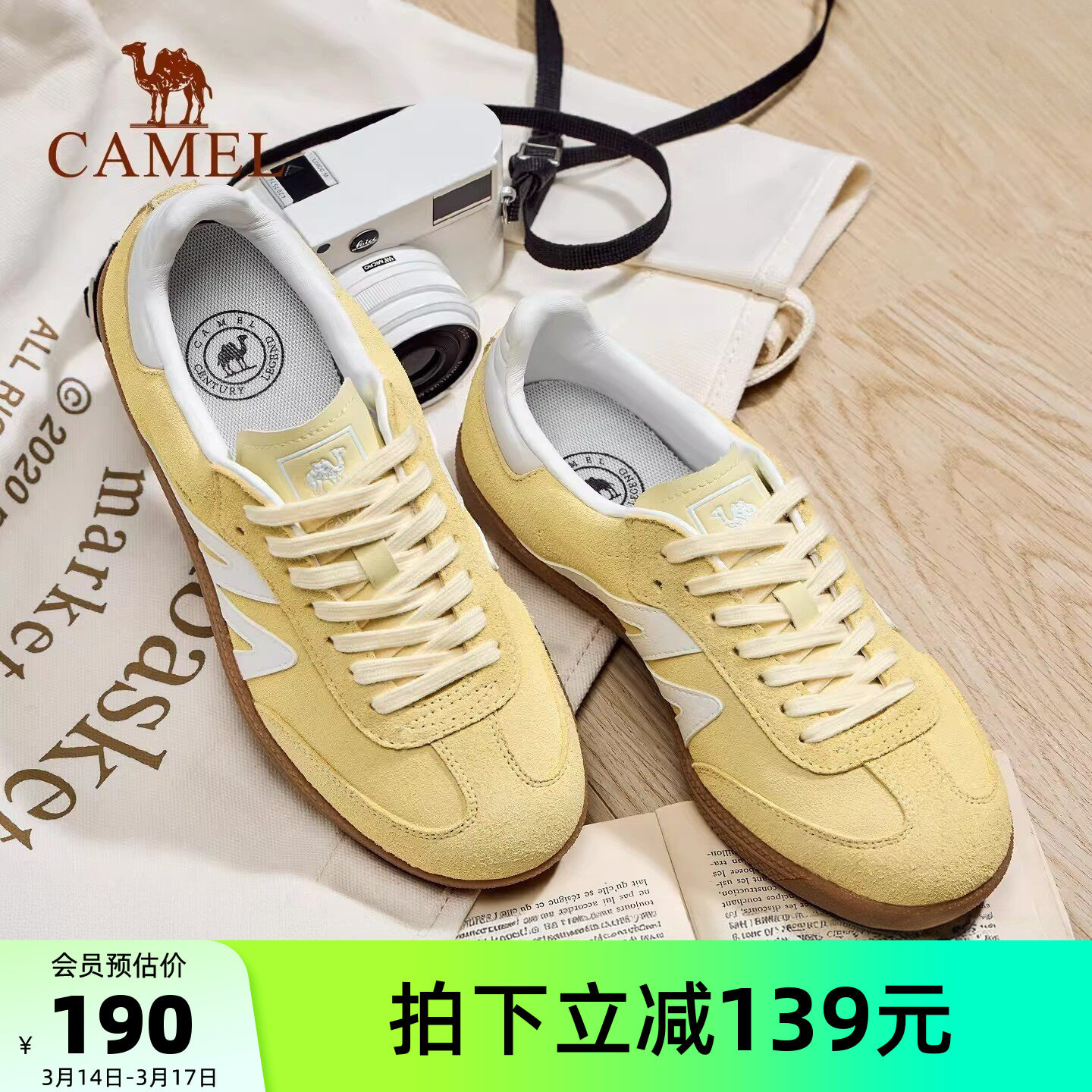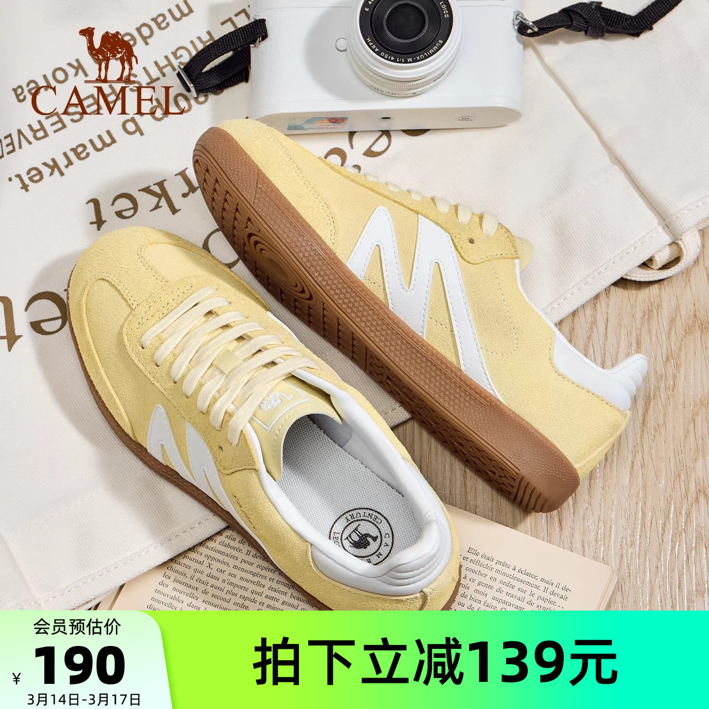 骆驼德训鞋女鞋2026新款平底小白鞋时尚复古休闲鞋T头鞋百搭板鞋