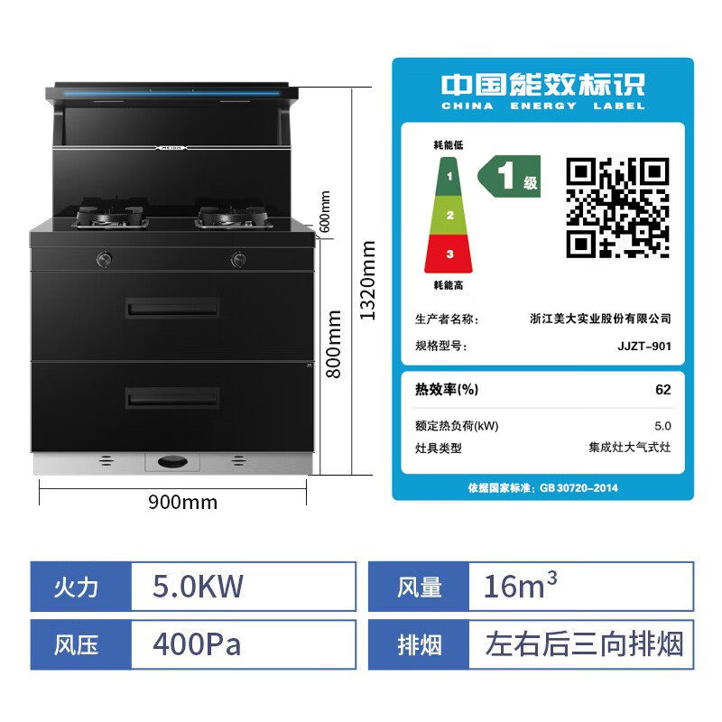 美大集成灶Z23-A 变频 大火力双重消毒双灶定时家用烟灶套装