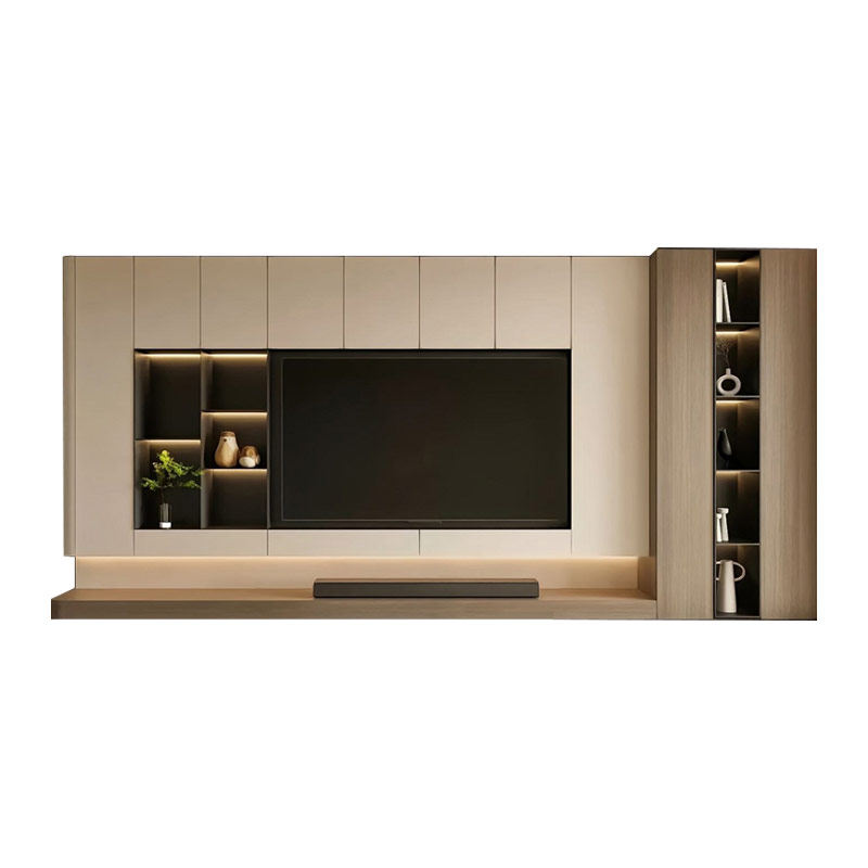 客厅家用电视柜收纳储物柜一体组合实木书柜落地背景墙柜全屋定制