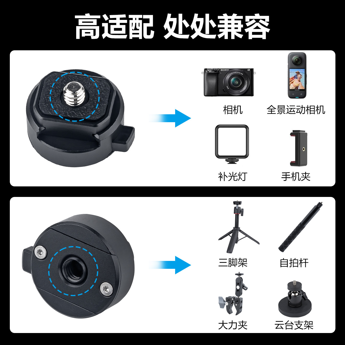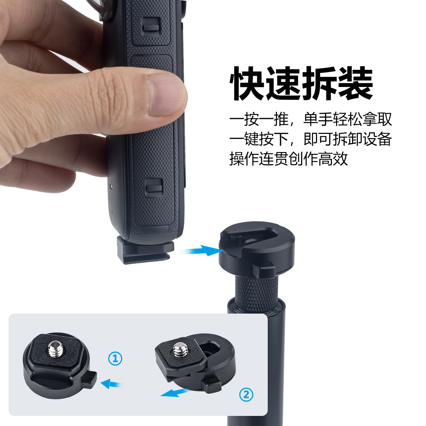 金属迷你快装板底座Insta360运动相机手机pocket3快拆1/4固定配件