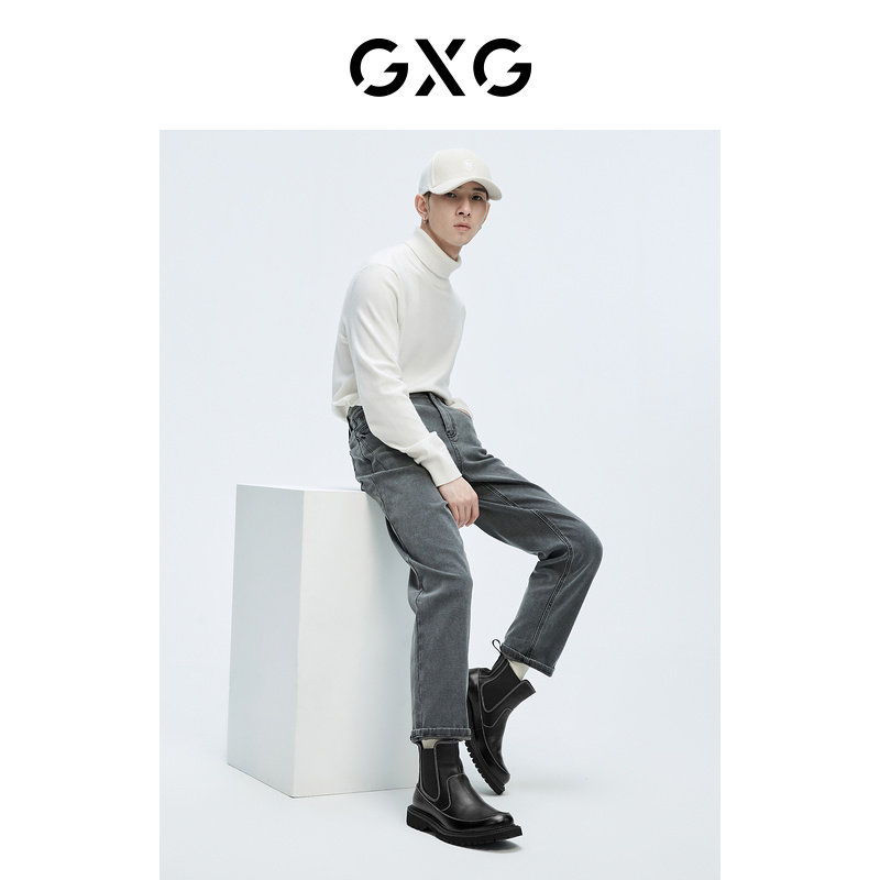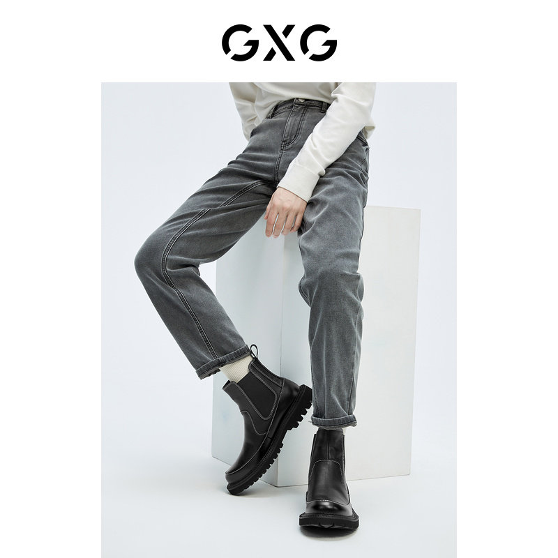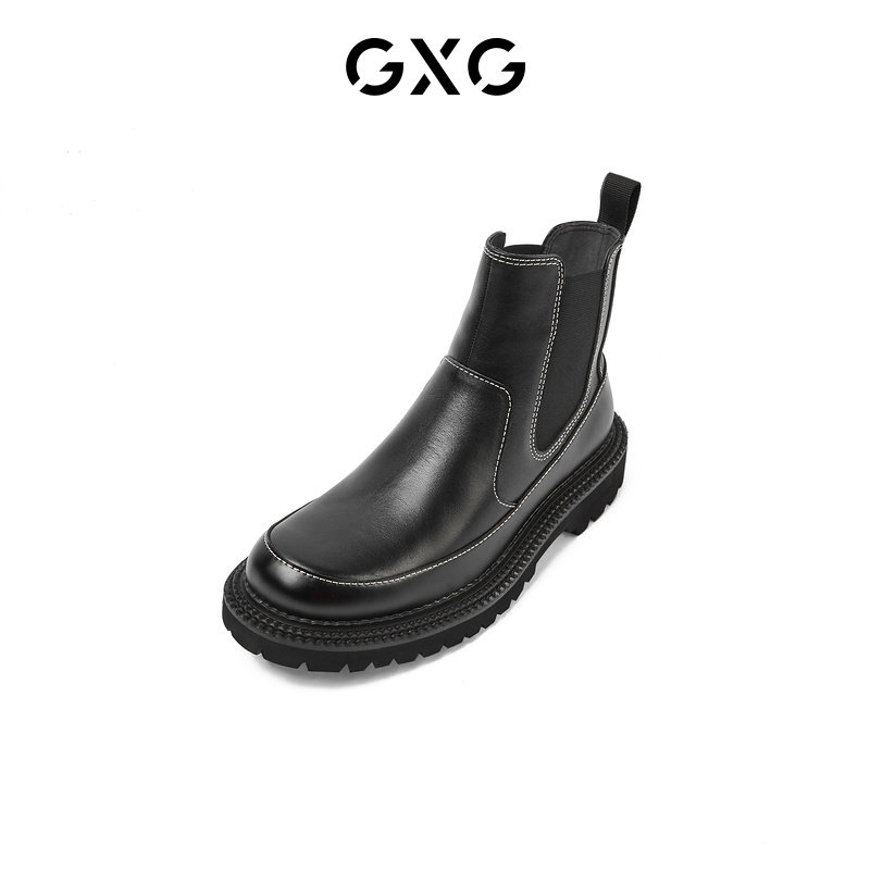 GXG切尔西靴男鞋真皮高帮男切尔西皮鞋内增高工装靴子厚底短靴男