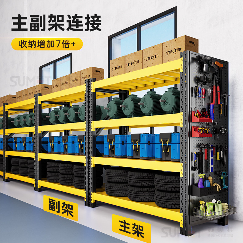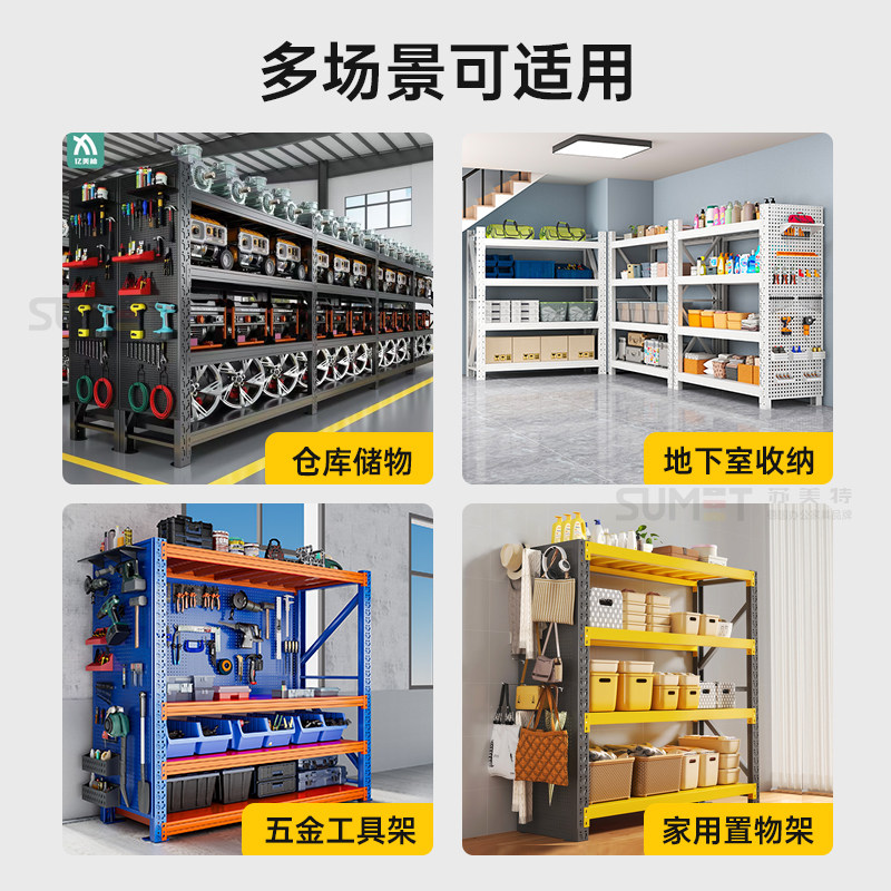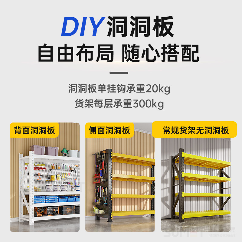 黑黄仓储货架洞洞板侧面家用多层置物架多功能仓库五金工具收纳架